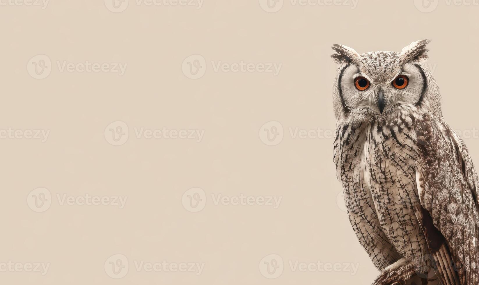 A large owl is perched on a branch, looking directly at the camera Pro Photo