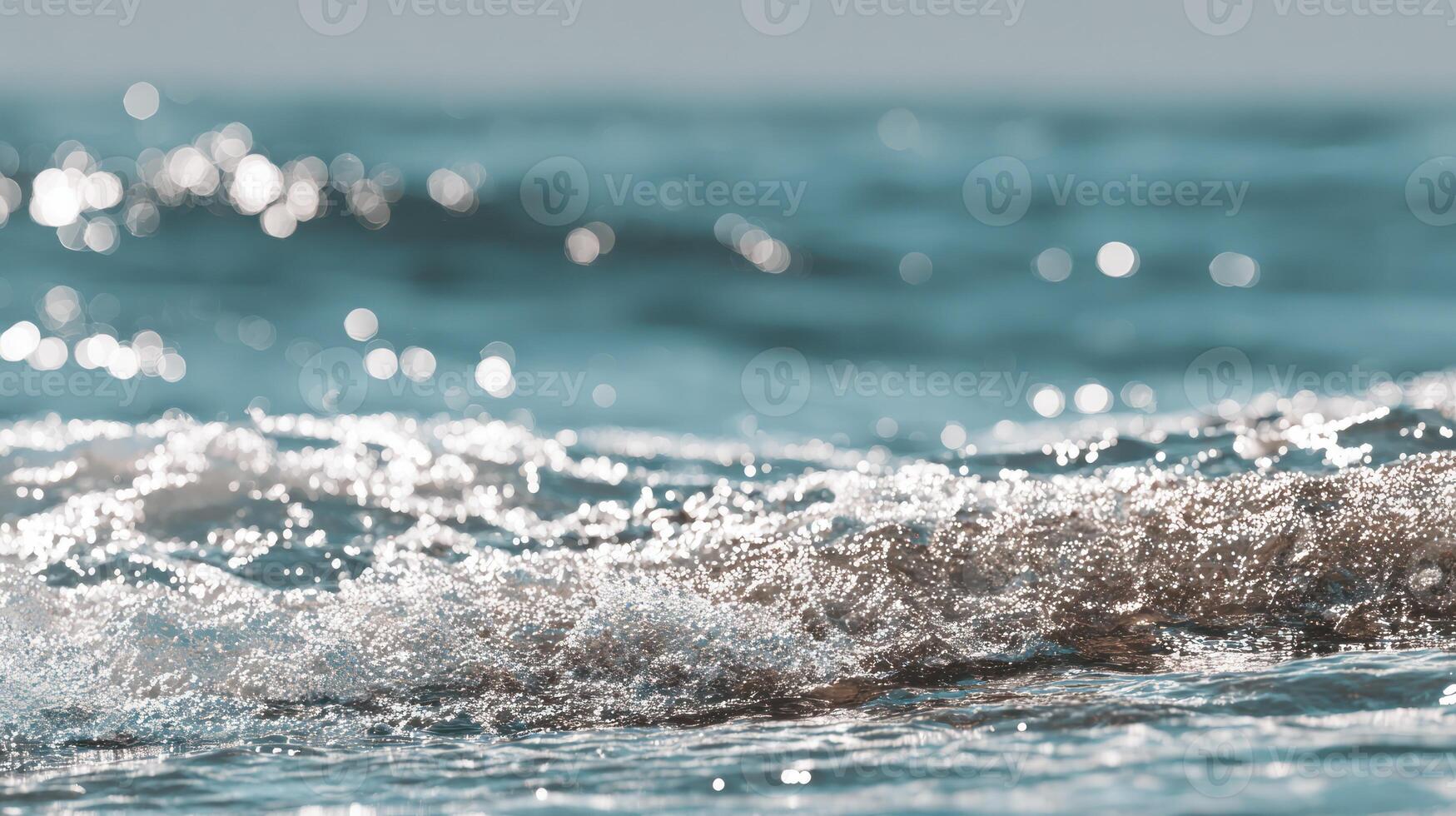 Ocean waves close up view of clear water with bokeh effect and sunlight Pro Photo