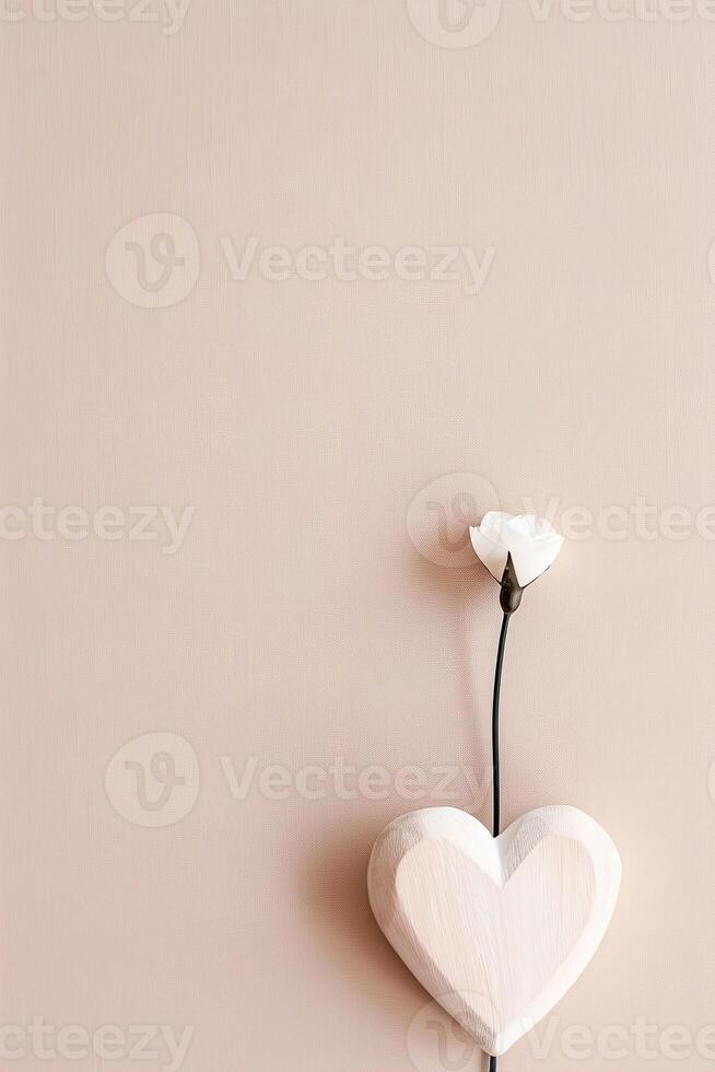 A minimalist black heart outline is positioned at the top of a soft pastel background, while a delicate flower stem emerges from a white heart at the bottom, creating a calming visual Pro Photo