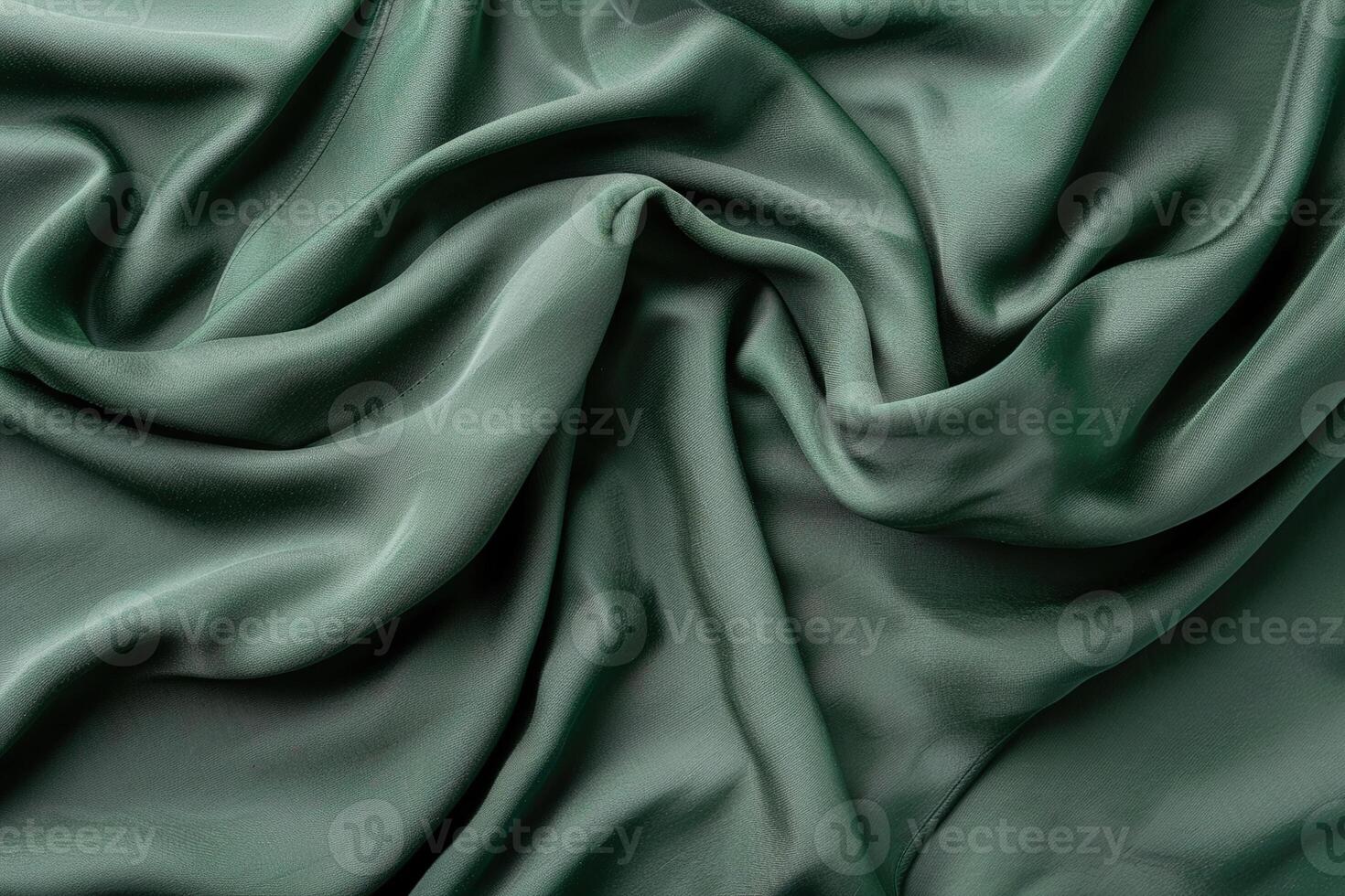 Soft fabric in a deep green hue is elegantly draped with gentle, flowing folds. The fine wool texture creates a luxurious and calm atmosphere, enhancing any space Pro Photo