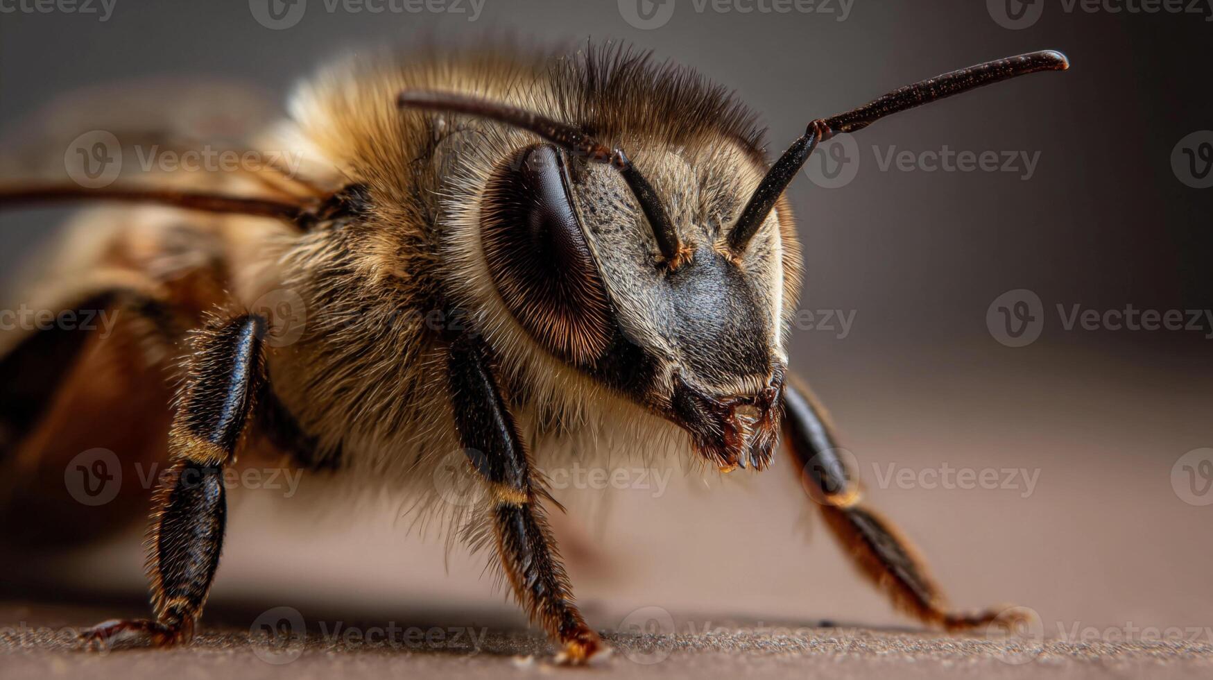 Close-up view of a bee on a surface highlighting its intricate features Pro Photo