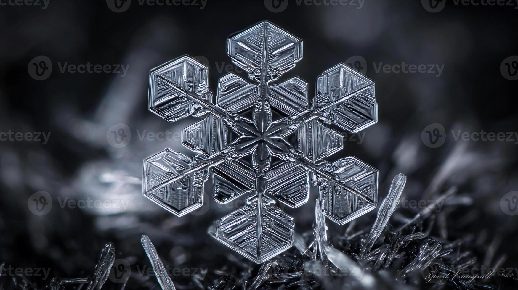 Close-up view of a snowflake showcasing its intricate geometric design Pro Photo