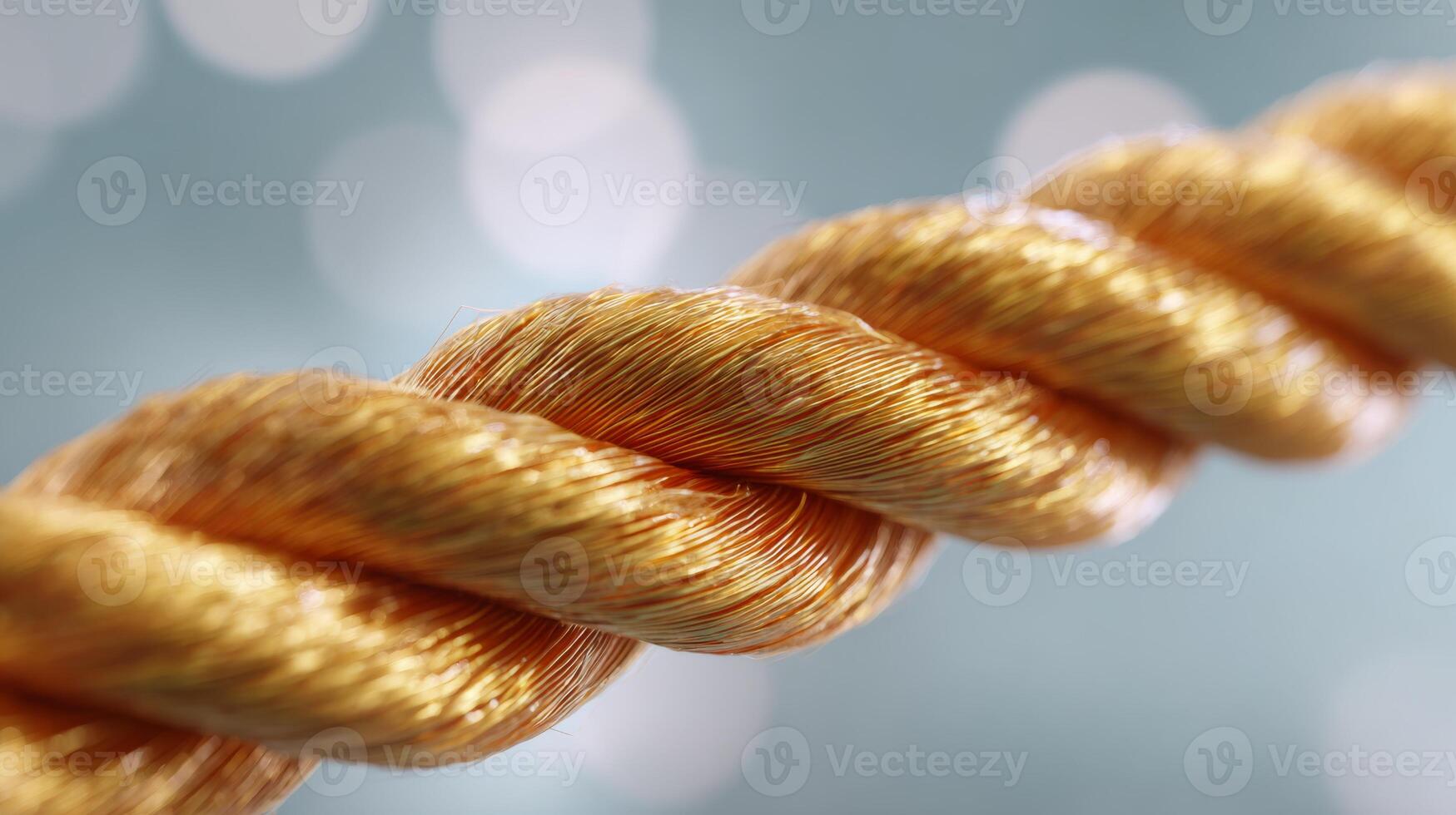 Close-up of a twisted golden rope against a bokeh background, showcasing its intricate details and texture. Pro Photo