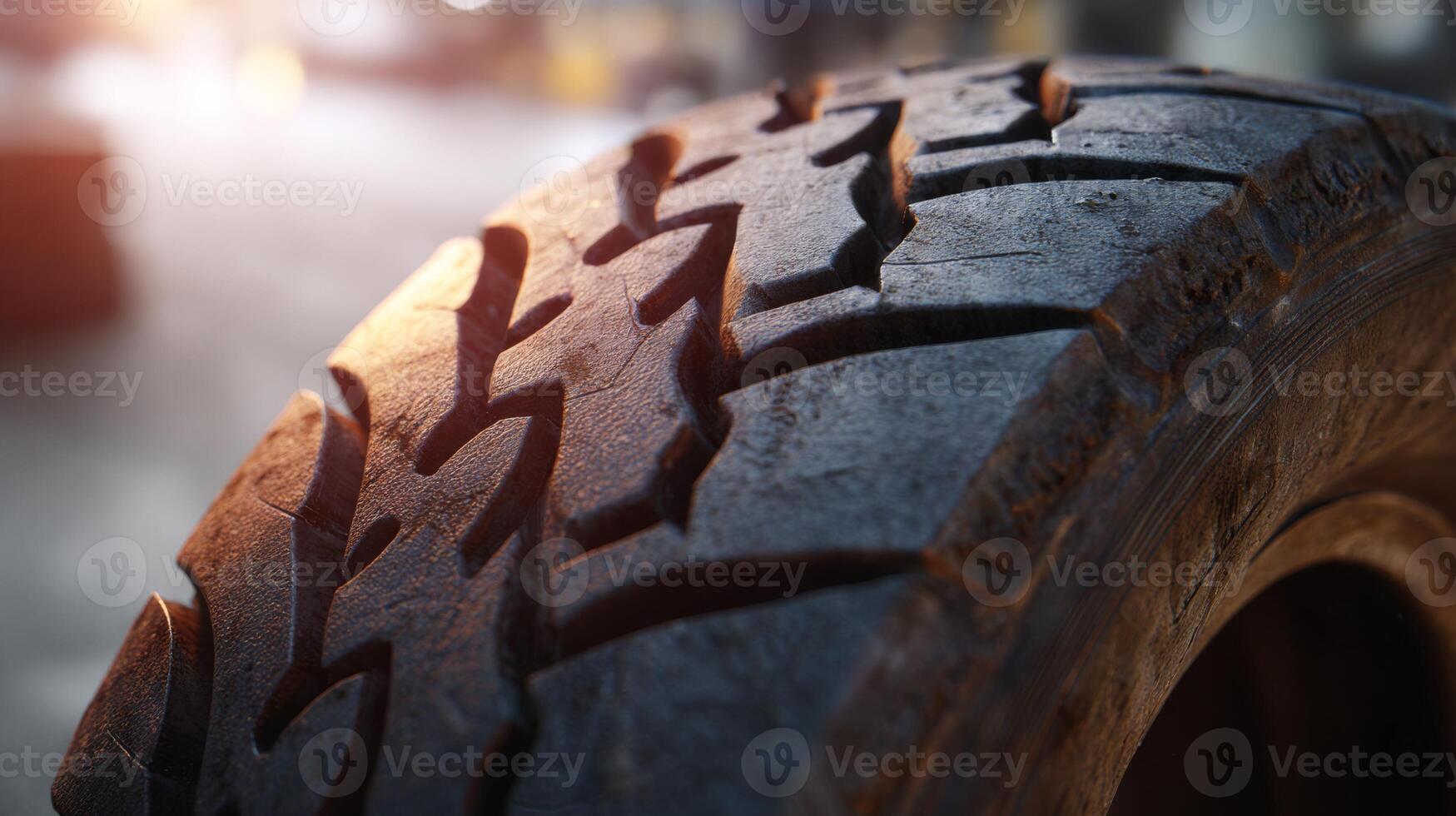 Close-up of a rugged tire showcasing intricate tread patterns and textures, emphasizing durability and strength. Pro Photo