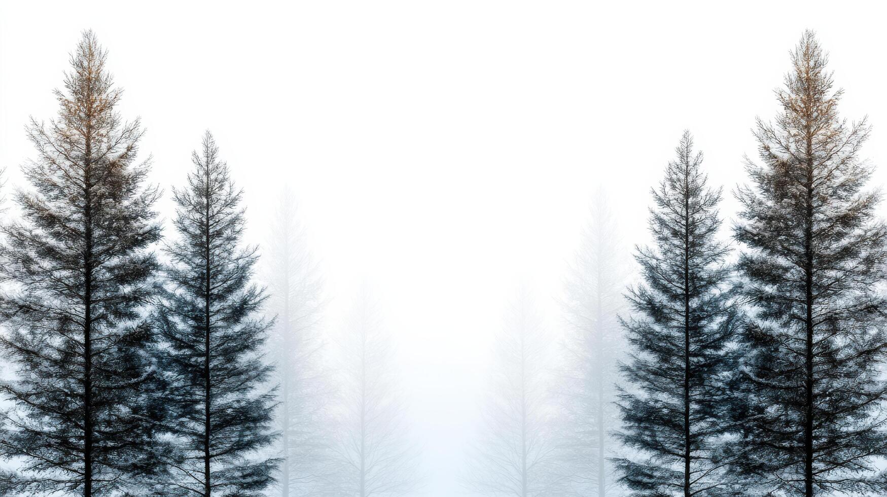 A group of trees in the fog with a white background photo