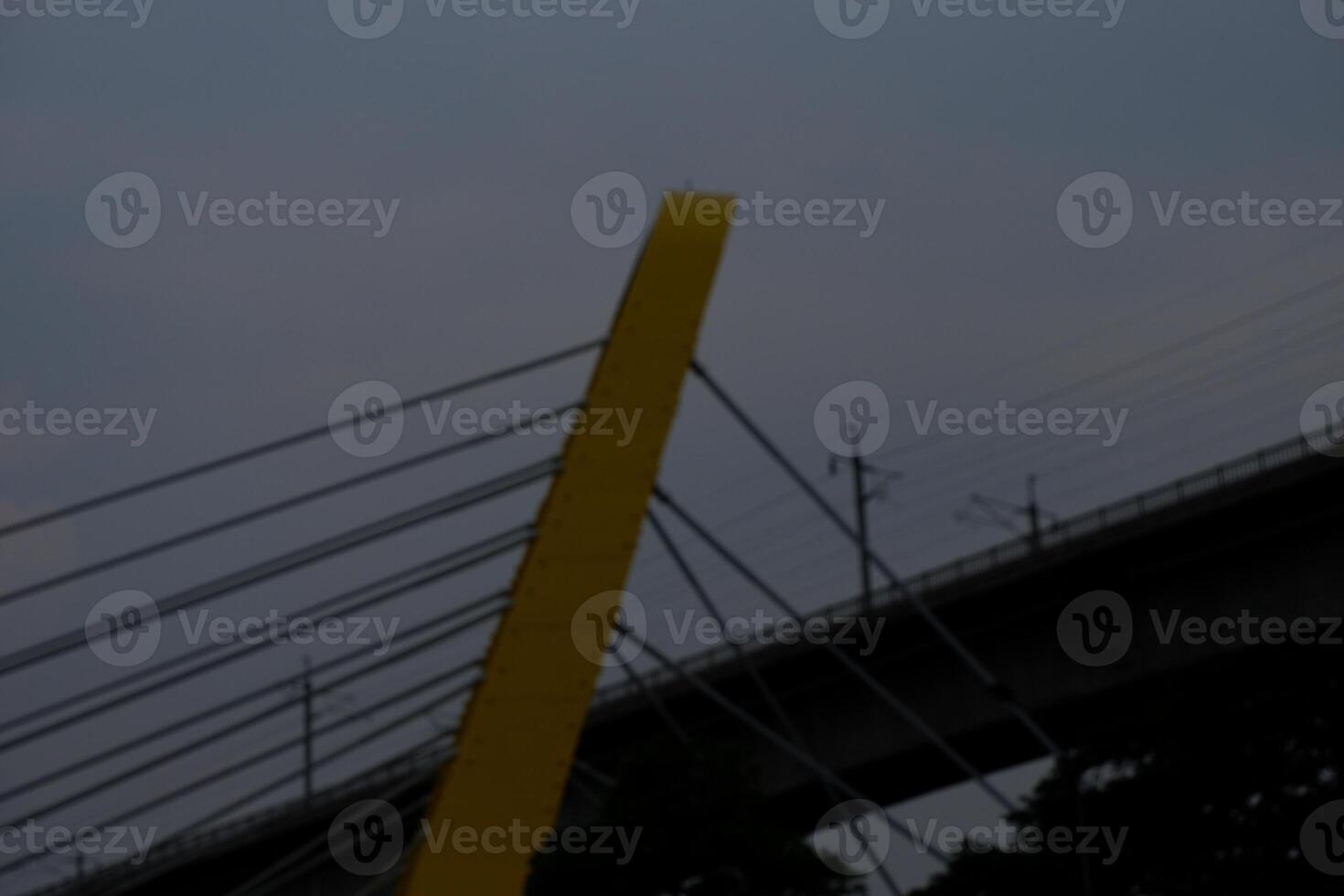 Modern Yellow Pillar Bridge Architecture Structure Under Overcast Sky Pro Photo