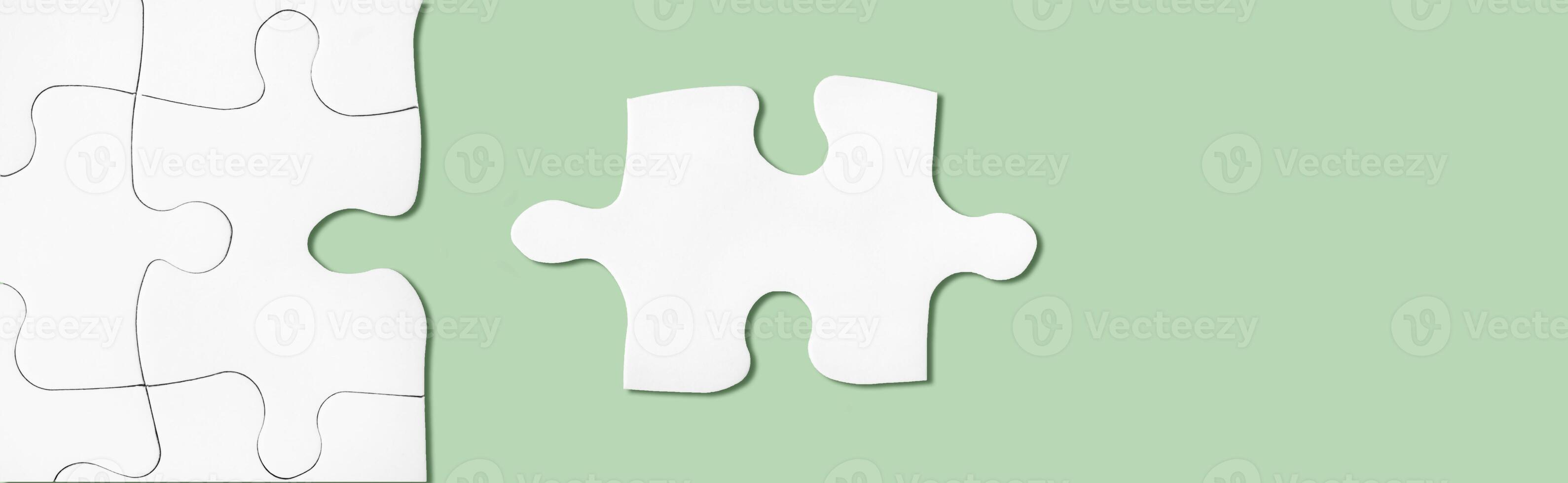 Puzzle on green surface. Connecting, network idea. Metaphor of teamwork, problem solving Pro Photo