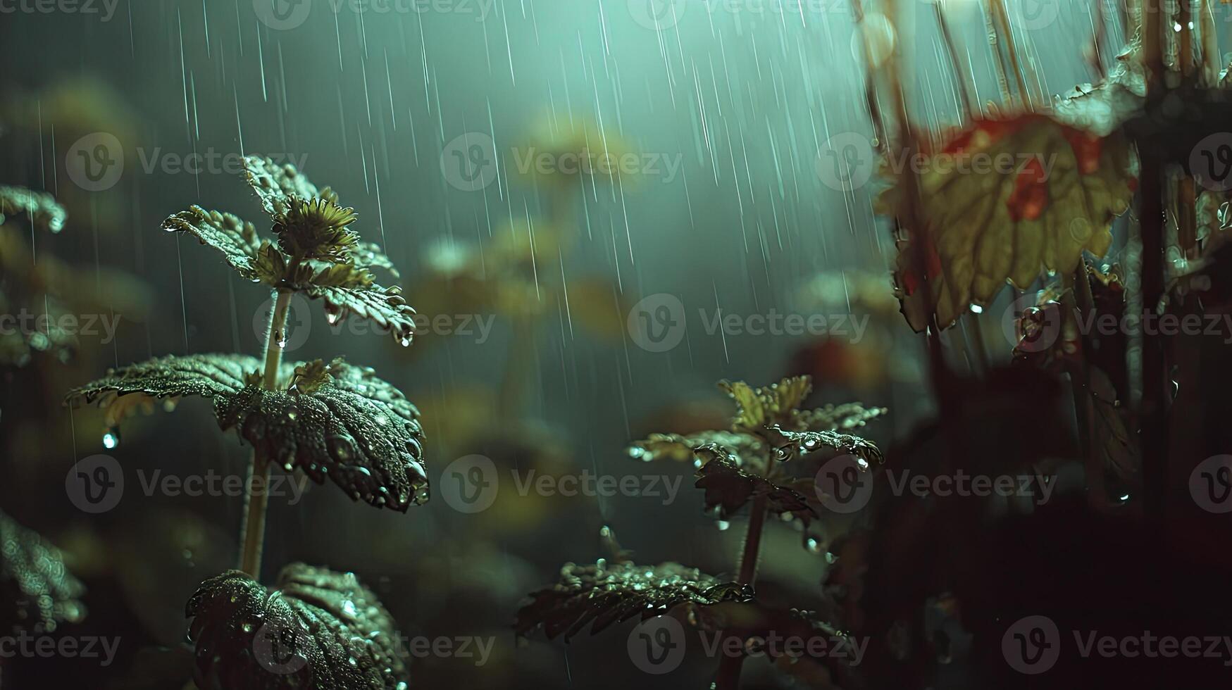 Soft rain falling on Catnip with gentle droplets dripping in a natural moody atmosphere Pro Photo
