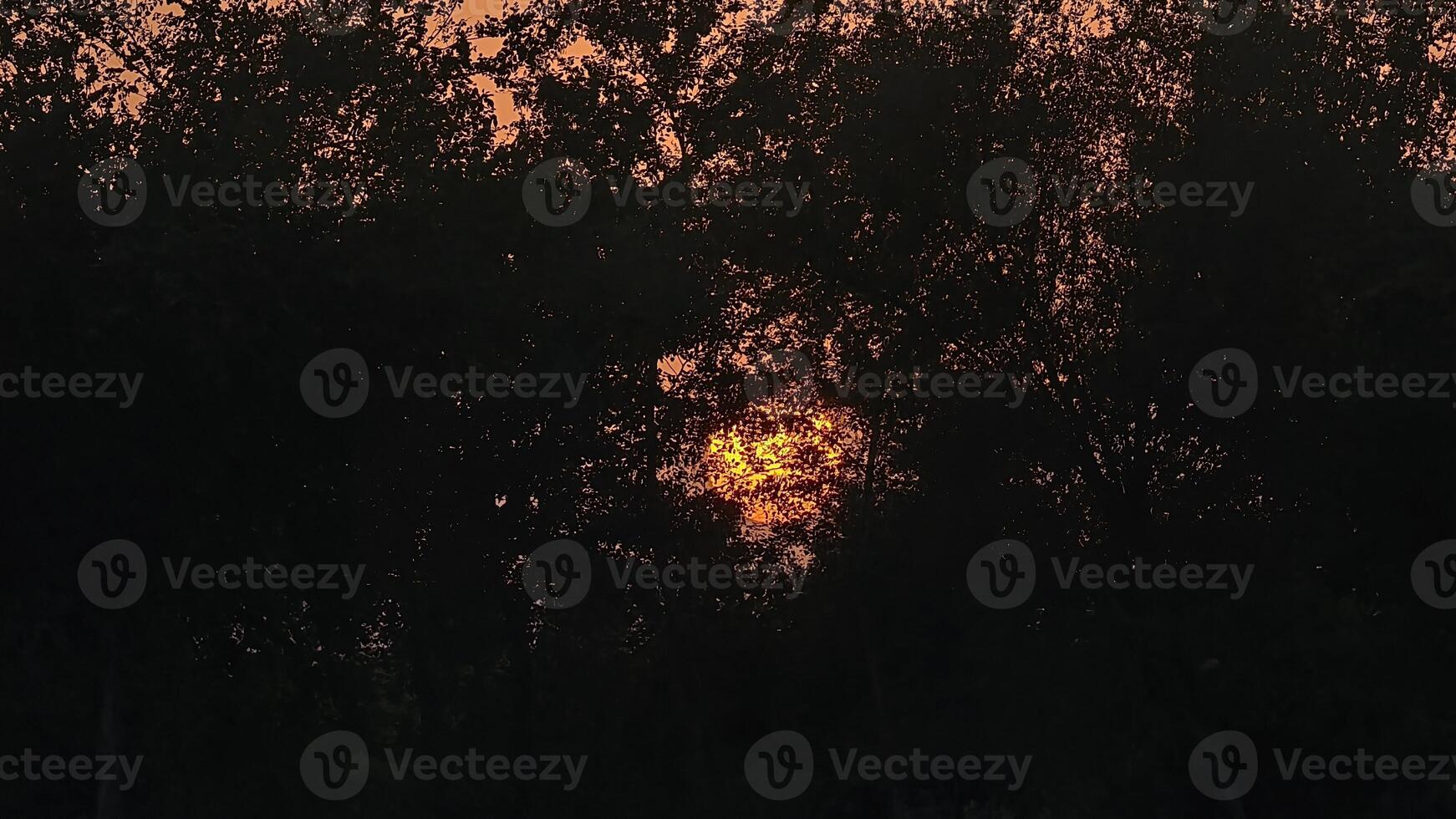 Golden sunset shining through tree branches, creating a beautiful contrast between light and shadow with a warm, inviting glow Pro Photo