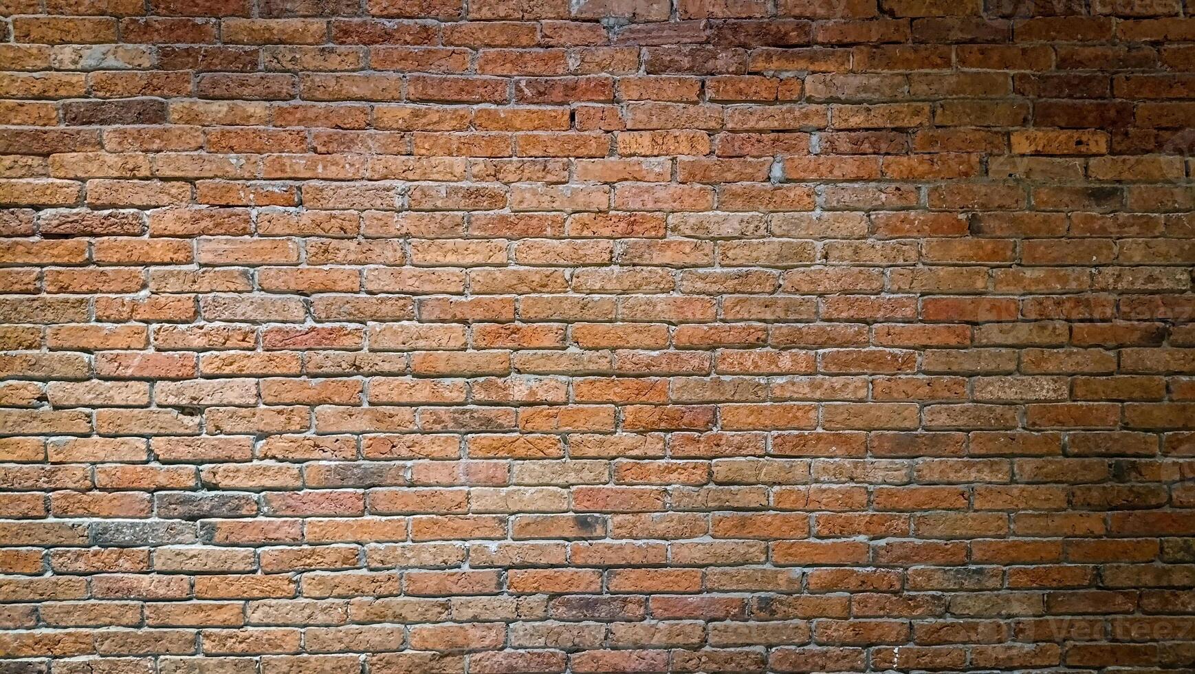 Detailed full frame view of an old brick wall featuring weathered bricks in shades of brown and orange, creating a textured surface suitable for backgrounds and design mockups. Pro Photo