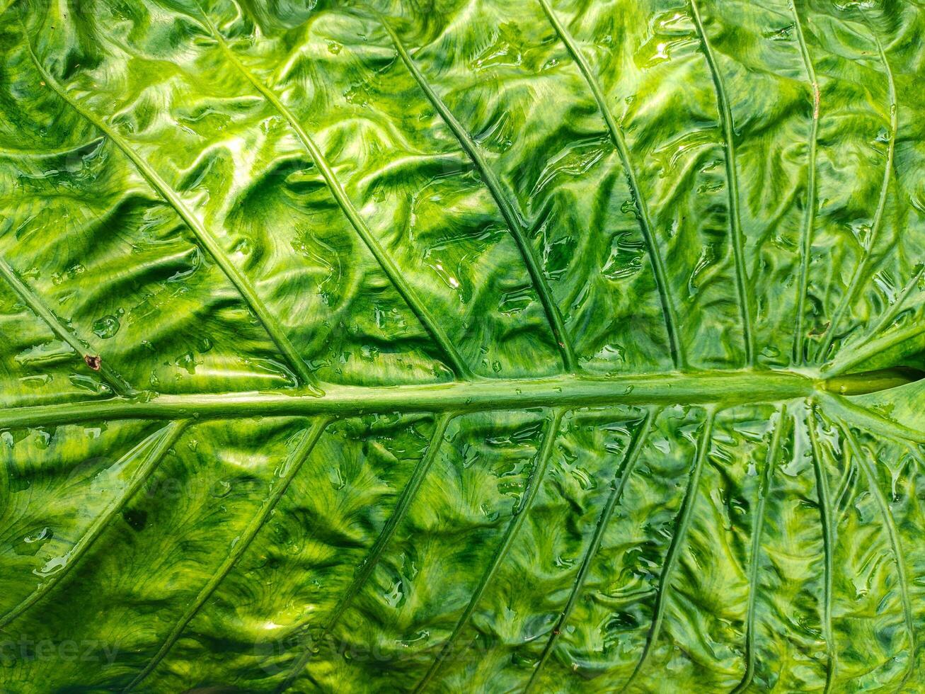 Detailed background of a vibrant green elephant ear leaf, its glossy, wet surface highlighting the complex, wrinkled texture and patterns Pro Photo