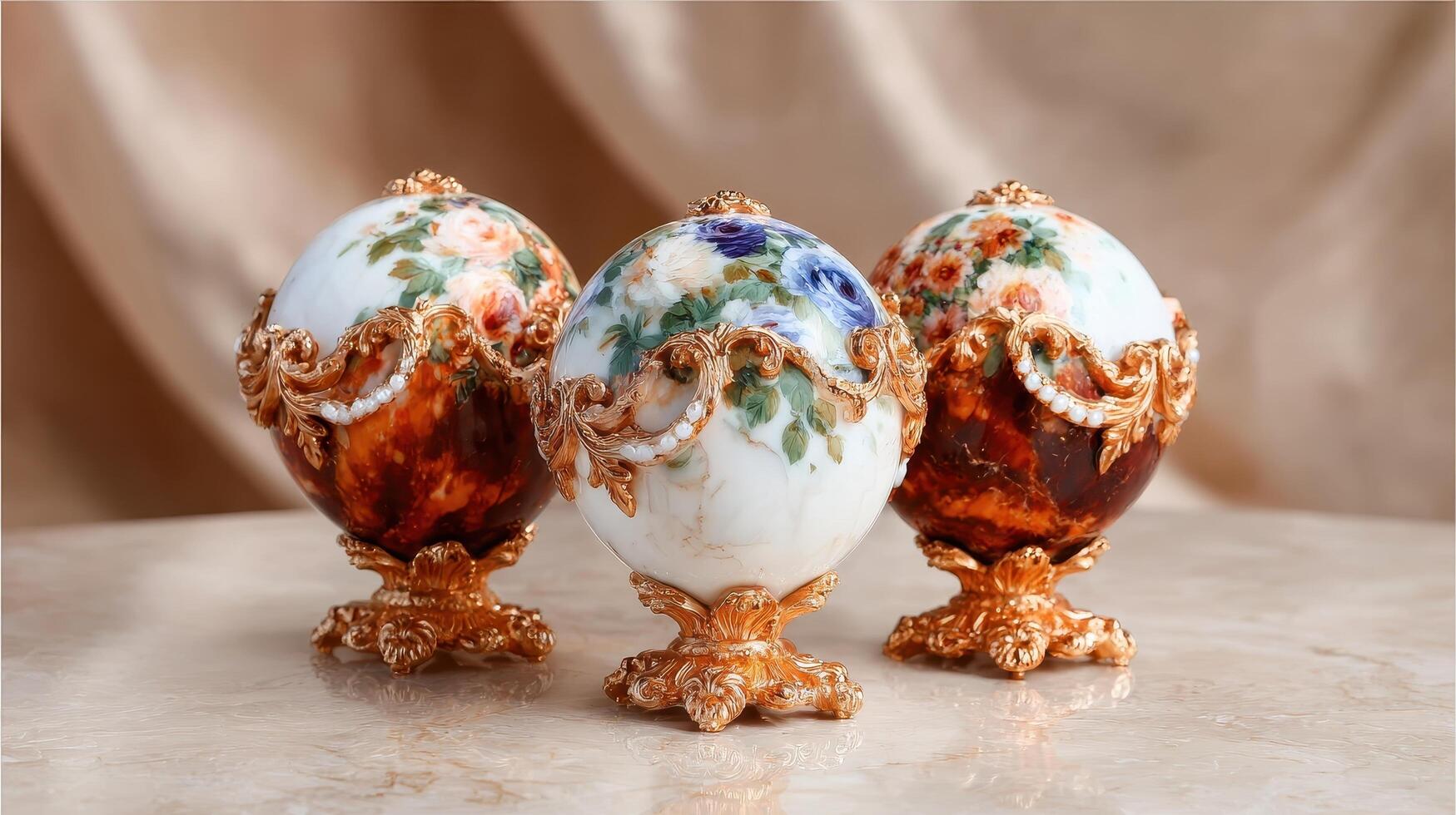 Luxurious Rococo orbs display intricate scrolls, floral patterns, and elegant gilding decorative finesse. Free Photo