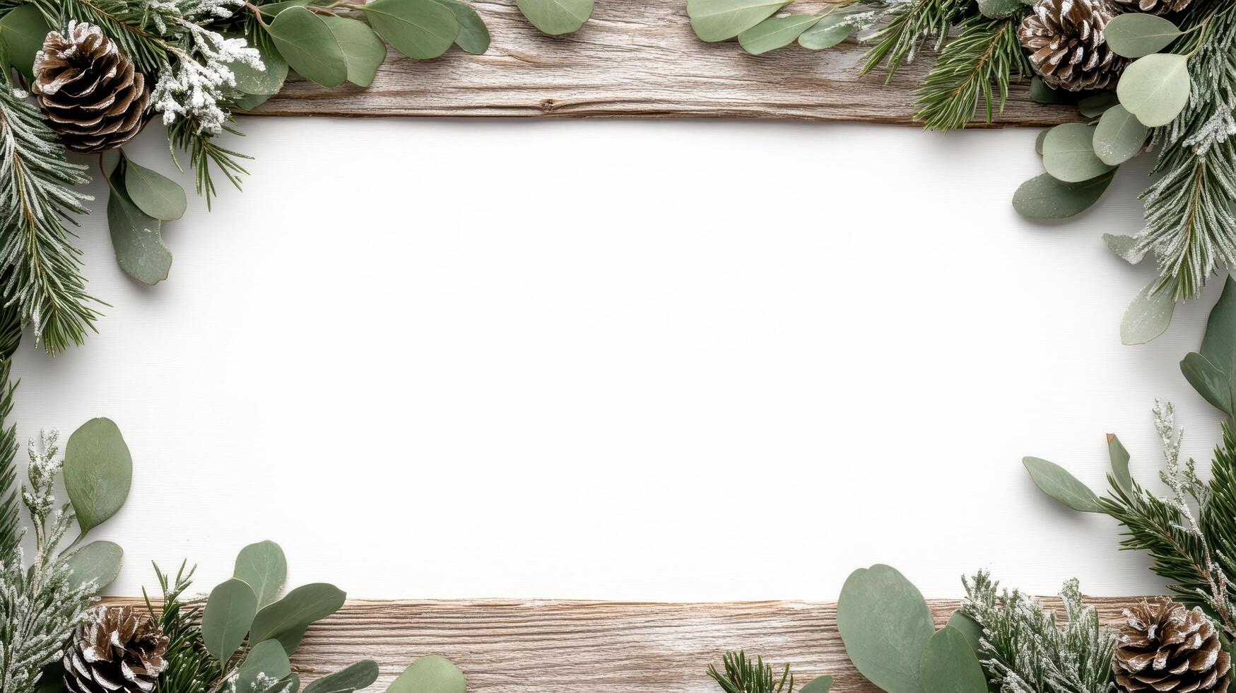 Winter eucalyptus and pine border with pinecone accents creating festive rustic calm Free Photo