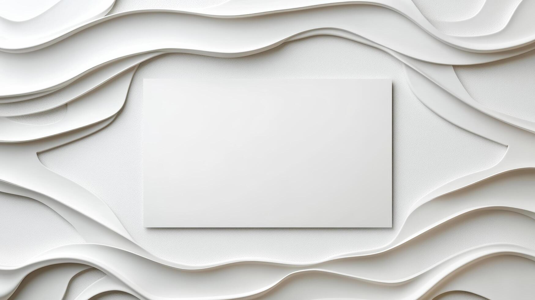 Blank rectangular canvas centered on layered white paper waves creating calm abstract depth photo