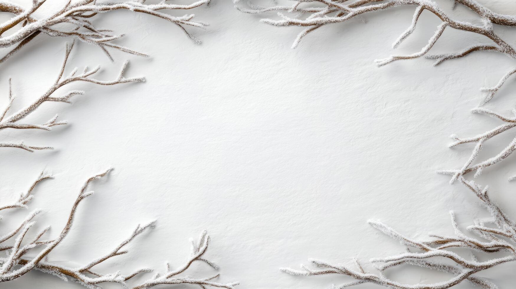 Frosted branch frame winter snow background minimalist snowy border empty center composition Free Photo