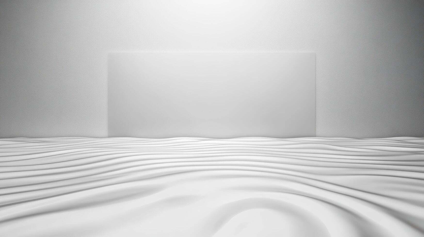 White rippled fabric surface with smooth panel backdrop creating calm minimalist scene photo
