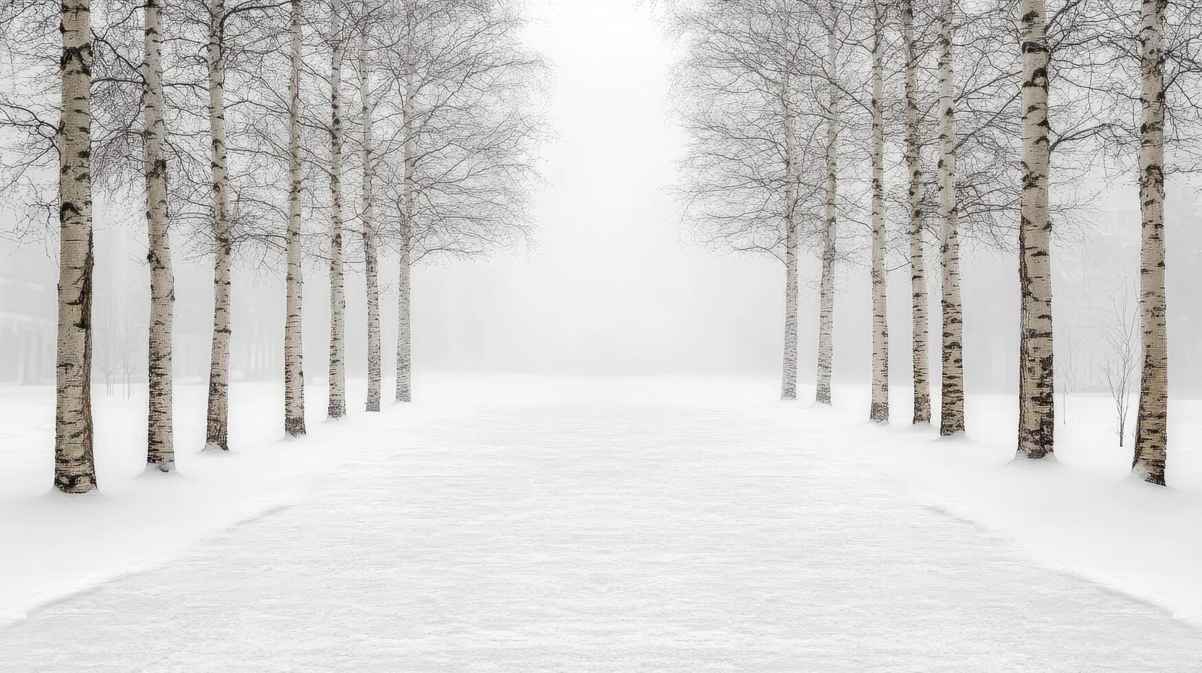A path lined with birch trees in the snow photo