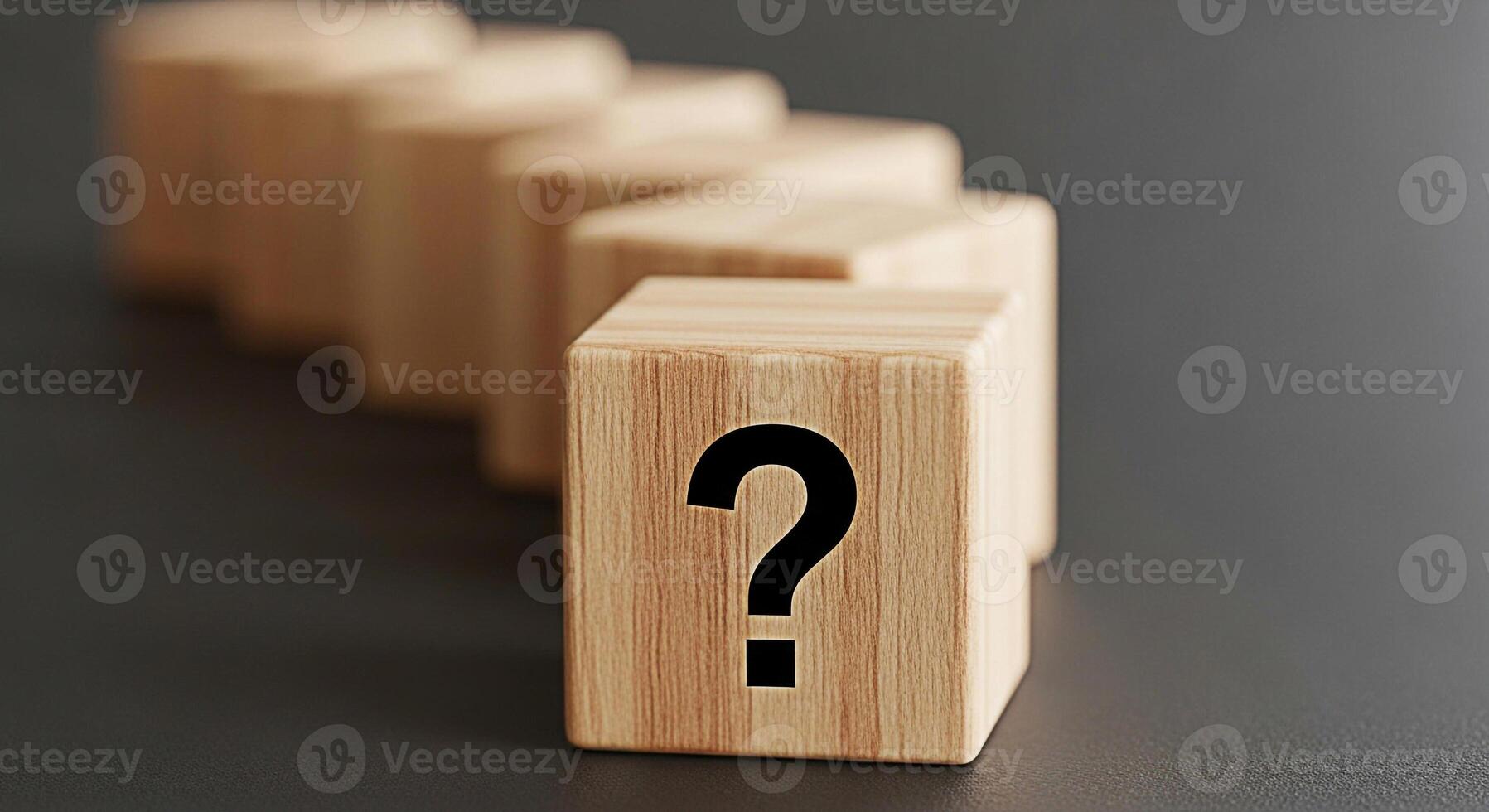 Wooden blocks with a question mark in a row on a dark background representing questions an Pro Photo