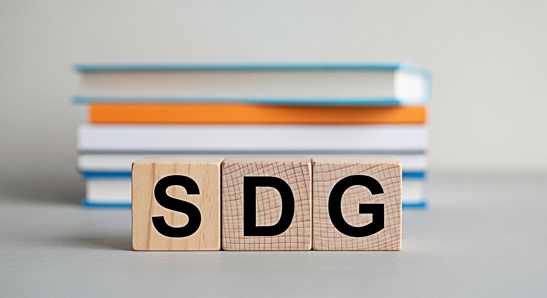 Wooden blocks displaying SDG in a learning environment with stacked books representing Sustainable Development Goals and fostering a global commitment to education and a better future for all photo