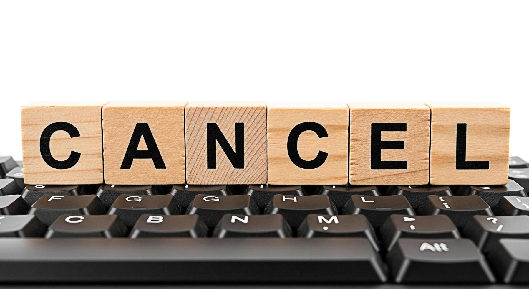 Wooden blocks spelling CANCEL sitting atop a black computer keyboard symbolizing the act of canceling an online subscription or appointment conveying a sense of finality and decisionmaking in a digita photo