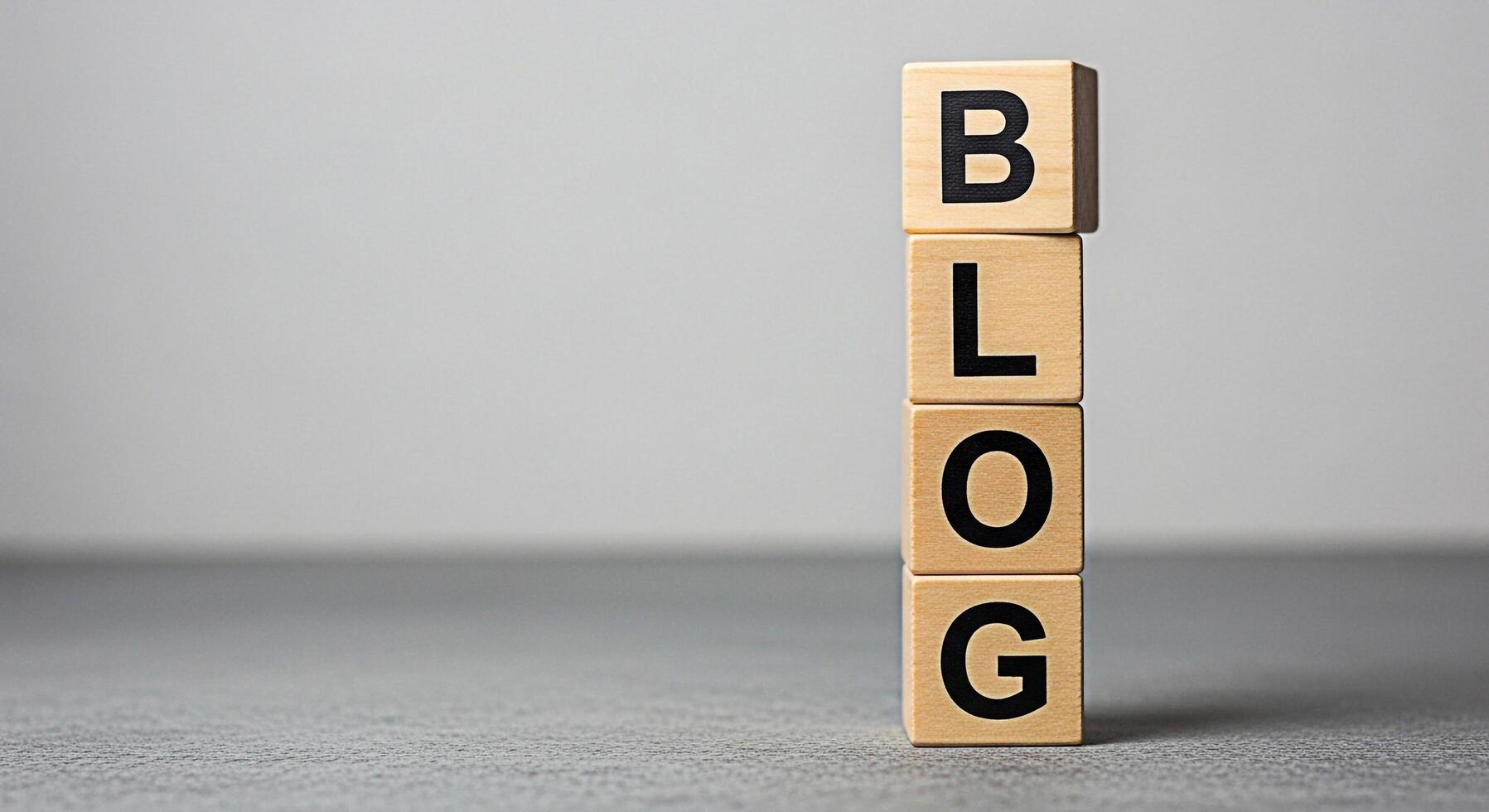 Wooden blocks spelling BLOG stacked vertically on a gray surface symbolizing online content creation and digital marketing strategy in a minimalist studio setting conveying a modern and informative co Free Photo