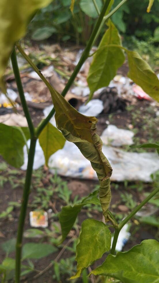 A wilted chili leaf with dried edges provides a powerful visual example for a plant problem detection machine learning dataset. photo