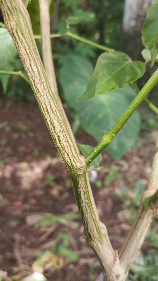 Chili plant stem showing pale surface and patterned streaks, photographed in close-up, ideal for datasets focused on botanical texture recognition. photo