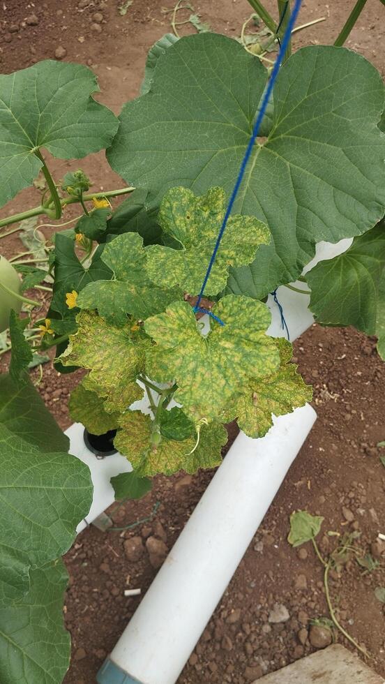photo from above Leaf showing spot chlorosis as damage symptom recognition data for machine learning.