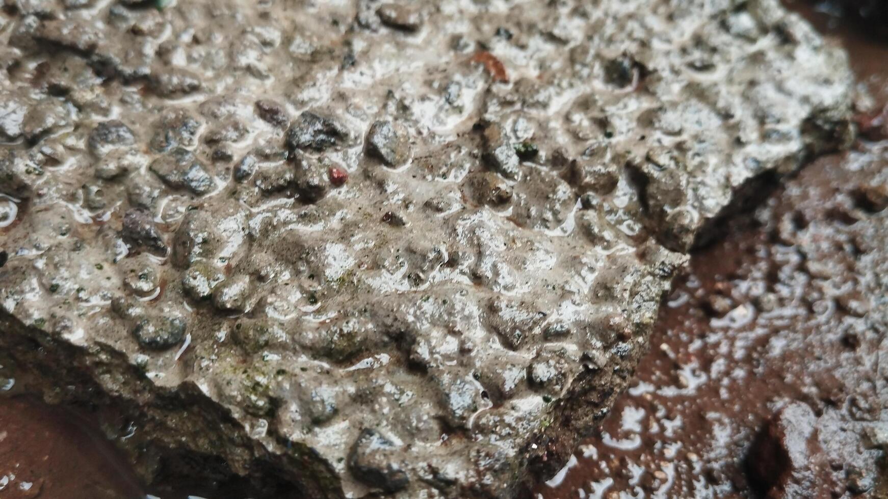 Textured photograph of wet stone objects with varying shapes and sizes. Taken without artificial lighting. Suitable for AI visual variation learning. photo