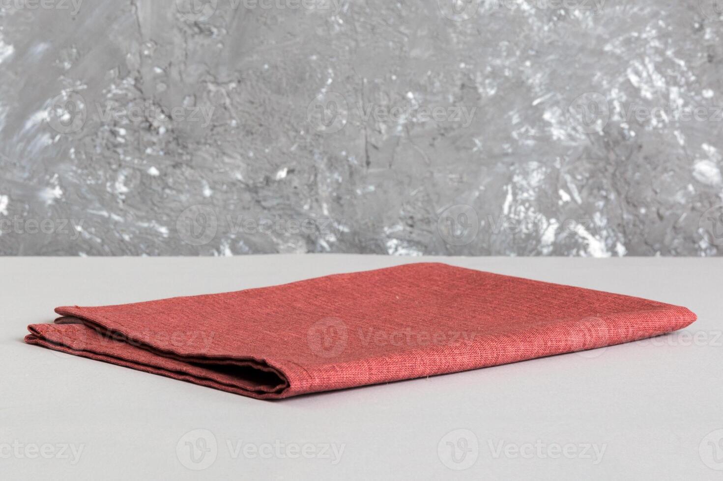 top view with red empty kitchen napkin isolated on table . Folded cloth for mockup with copy space, Flat lay. Minimal style Pro Photo