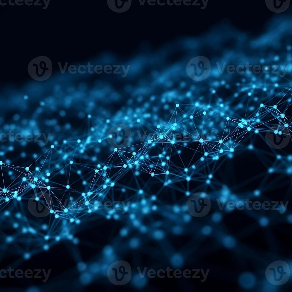 Abstract digital network of glowing blue nodes and connecting lines on a dark background, representing data and connectivity Pro Photo