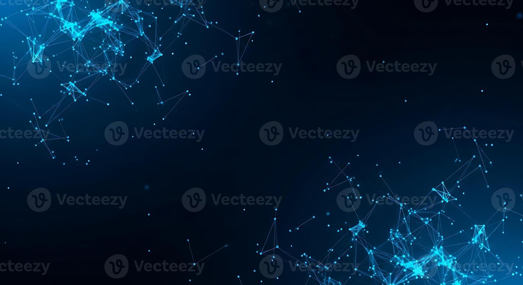 Abstract glowing blue network of interconnected nodes and lines on a dark background, representing data and technology Pro Photo
