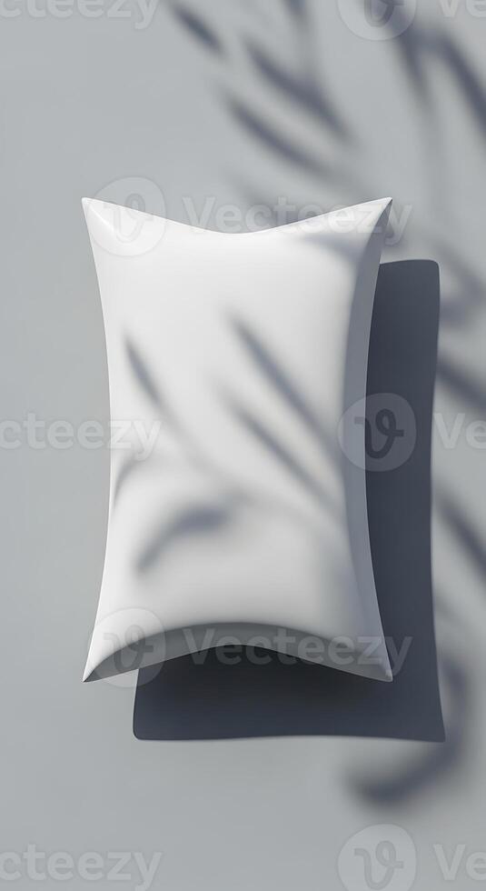A clean white pillow casting a soft shadow on a light gray surface with subtle leaf patterns Pro Photo