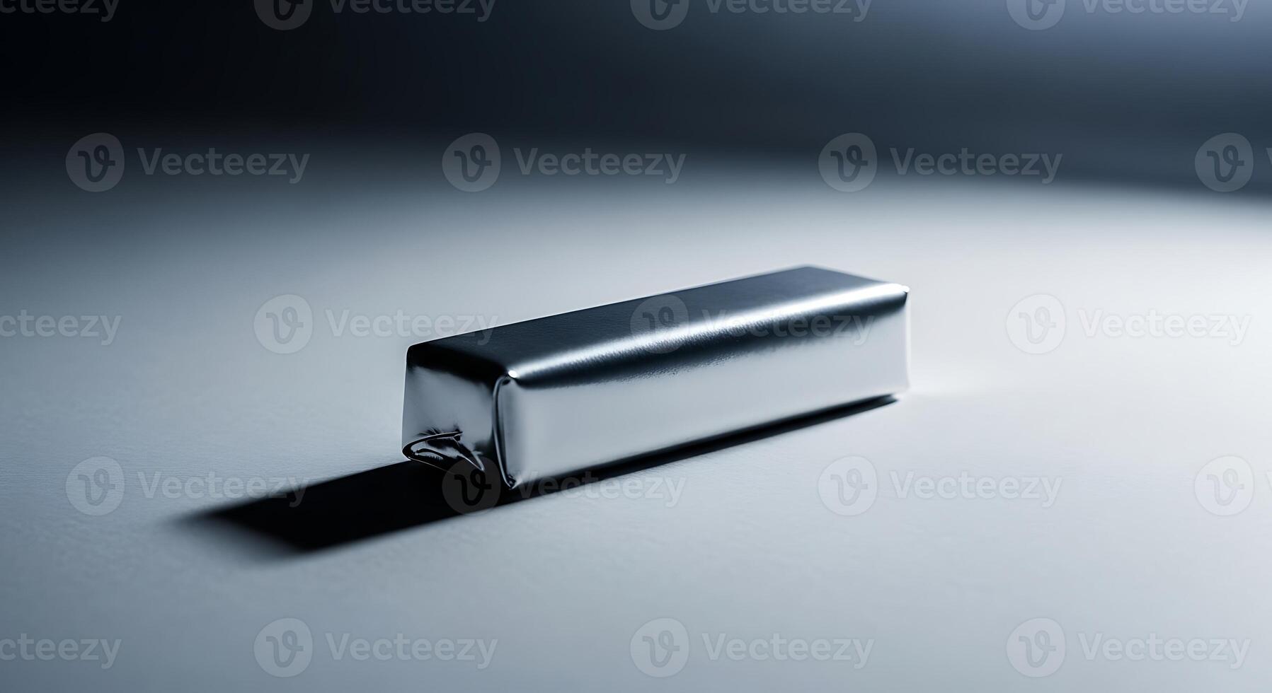 A sleek, metallic rectangular object casting a sharp shadow on a smooth, subtly lit surface Pro Photo