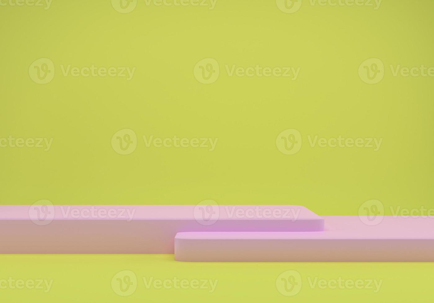 3d rendering studio with geometric shapes, podium on the floor. Platforms for product presentation, mock up background. Pro Photo