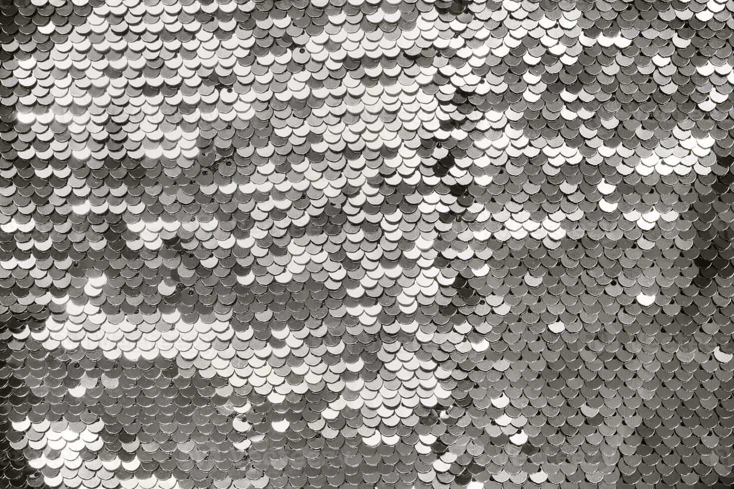 Close up of shiny silver sequins creating an abstract pattern. Color of the year concept Pro Photo