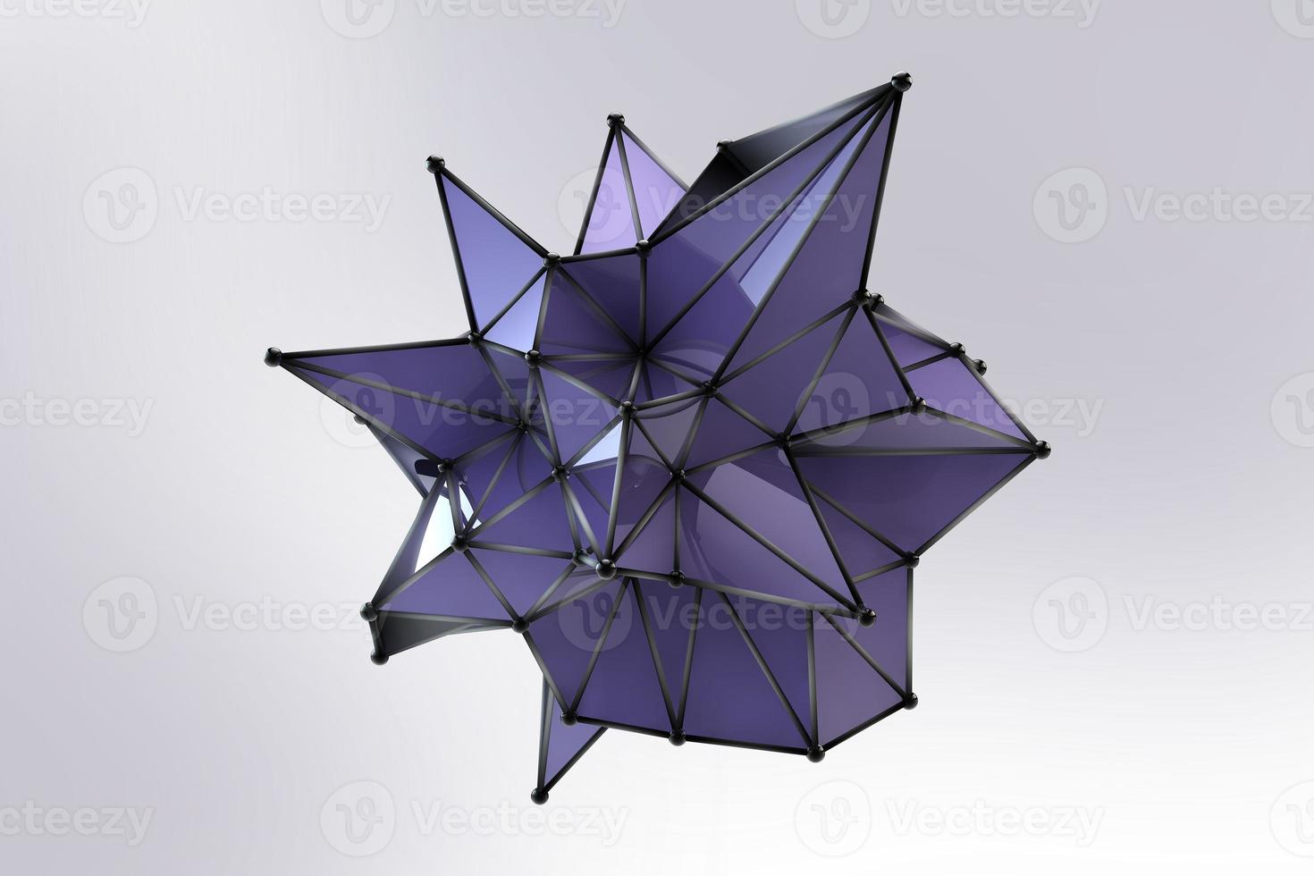Abstract purple plexus structure illustration with mirror reflection. Technology and futuristic glassy geometric shape with connected dots and lines 3d rendering background Pro Photo
