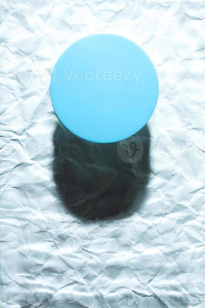 Round blue object on abstract blue background. Minimalist flat lay single object with shadow. Pro Photo