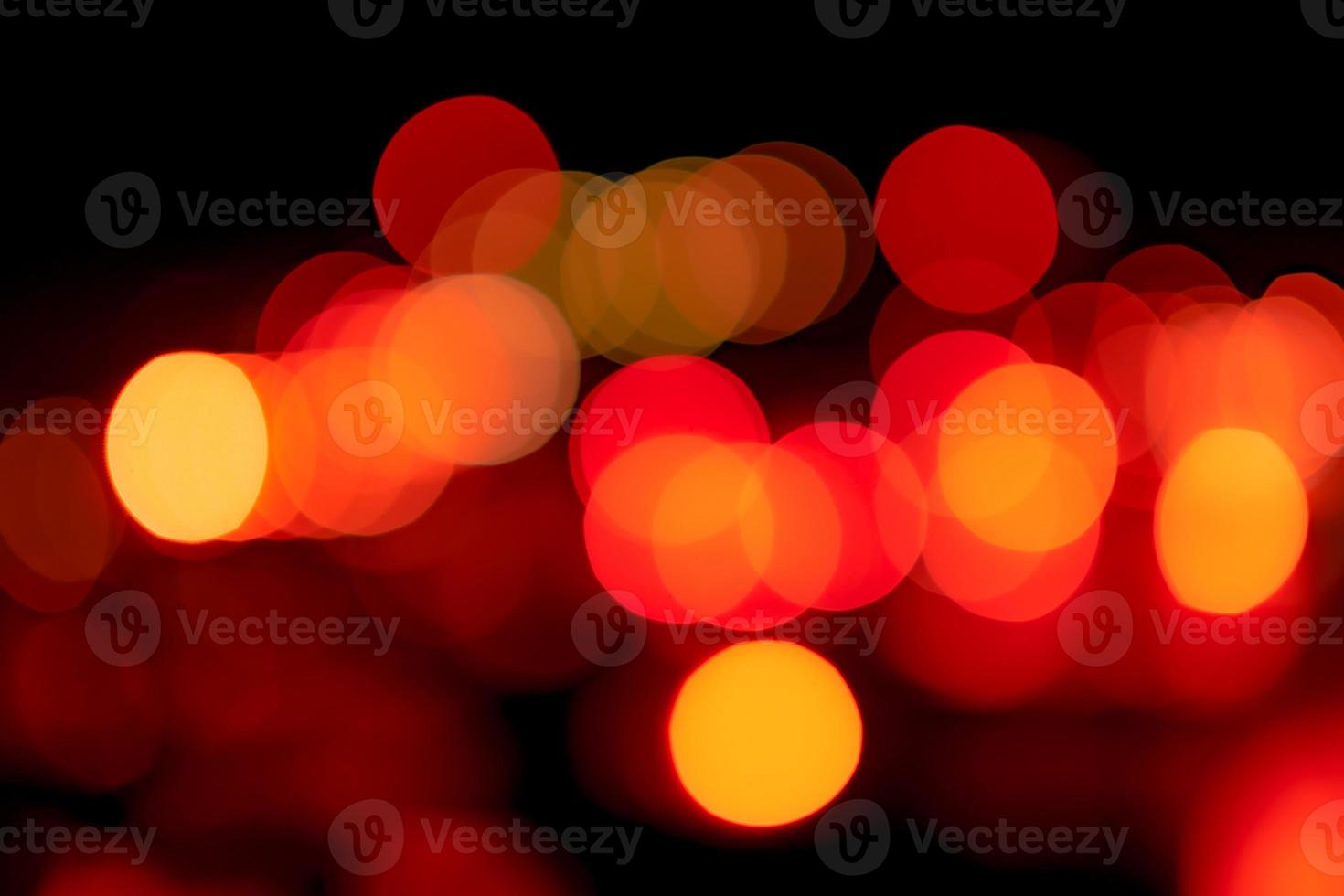 Blur red and orange bokeh on dark background. Abstract background of city light. Bokeh light with pattern of circle bokeh. Red and yellow light on black. Defocused bokeh light in the city at night. Pro Photo