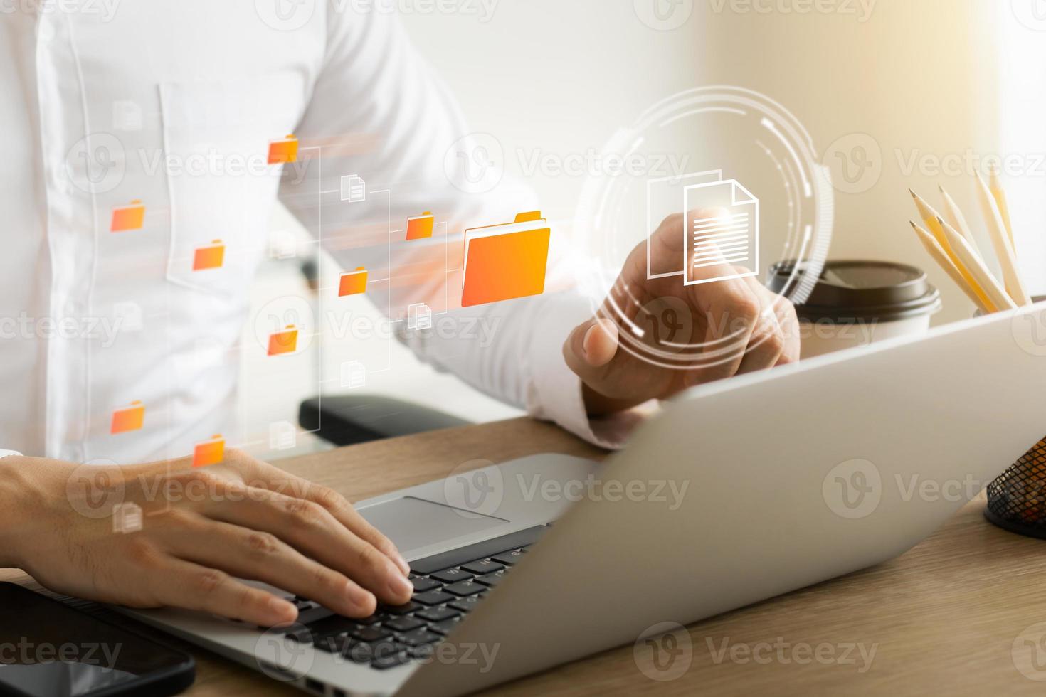 Document management system concept, virtual screen icon. Document Storage System DMS Online database, software for efficient management of company files and data. Pro Photo