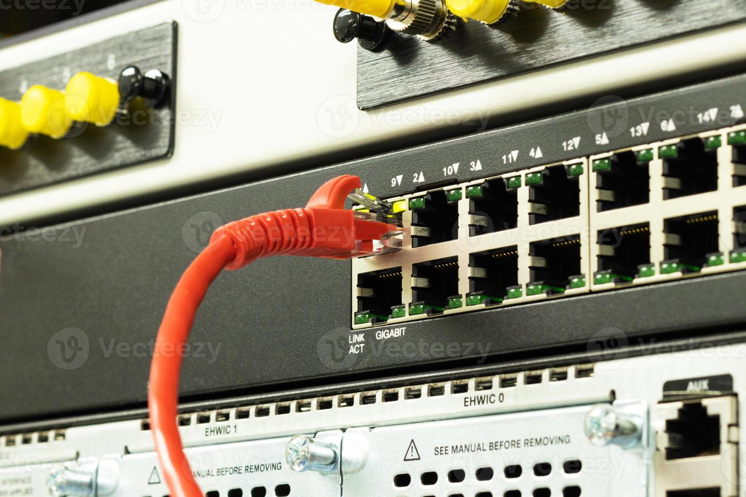 The network cables to connect the port of a switch to connect internet network, concept Communication technology Pro Photo