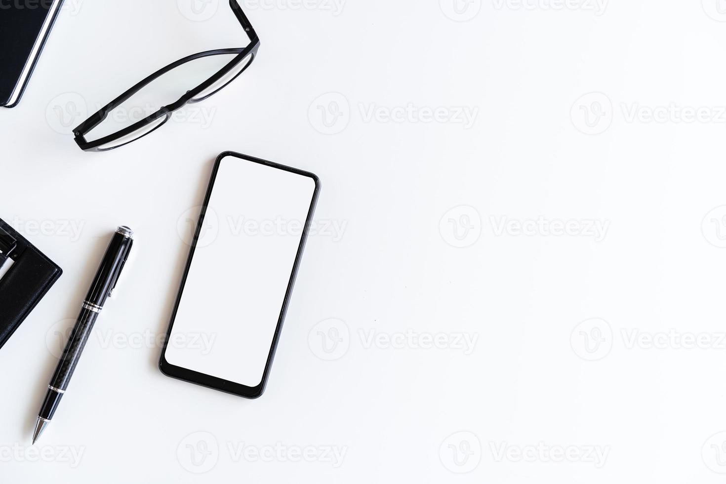 Empty screen Smart phone and file folder on business desk office with copy space Pro Photo