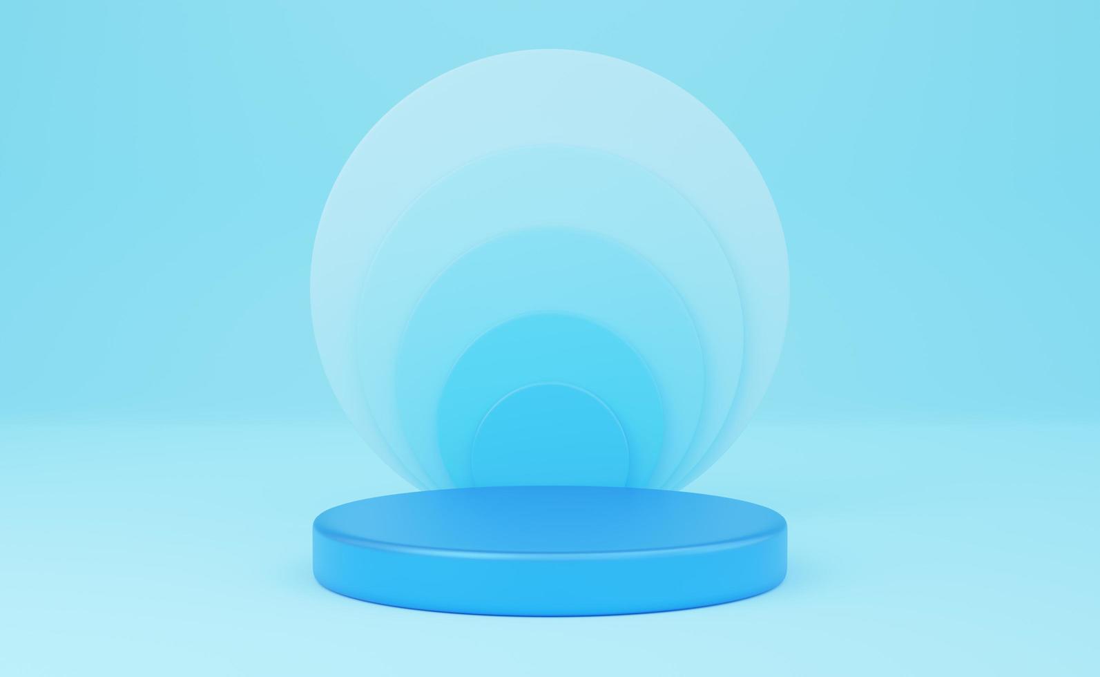 Empty blue cylinder podium on blue background. Abstract minimal studio 3d geometric shape object. Mockup space for display of product design. 3d rendering. photo