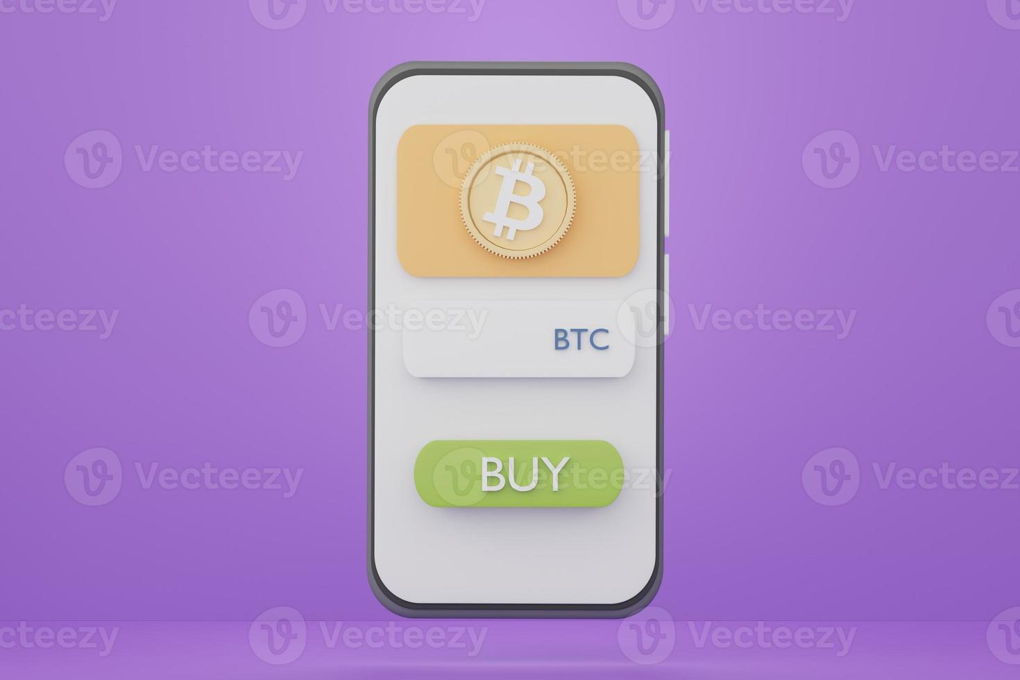 3d render smartphone with application wallet for buying bitcoin. Crypto currency transactions on network of blockchains. Pro Photo