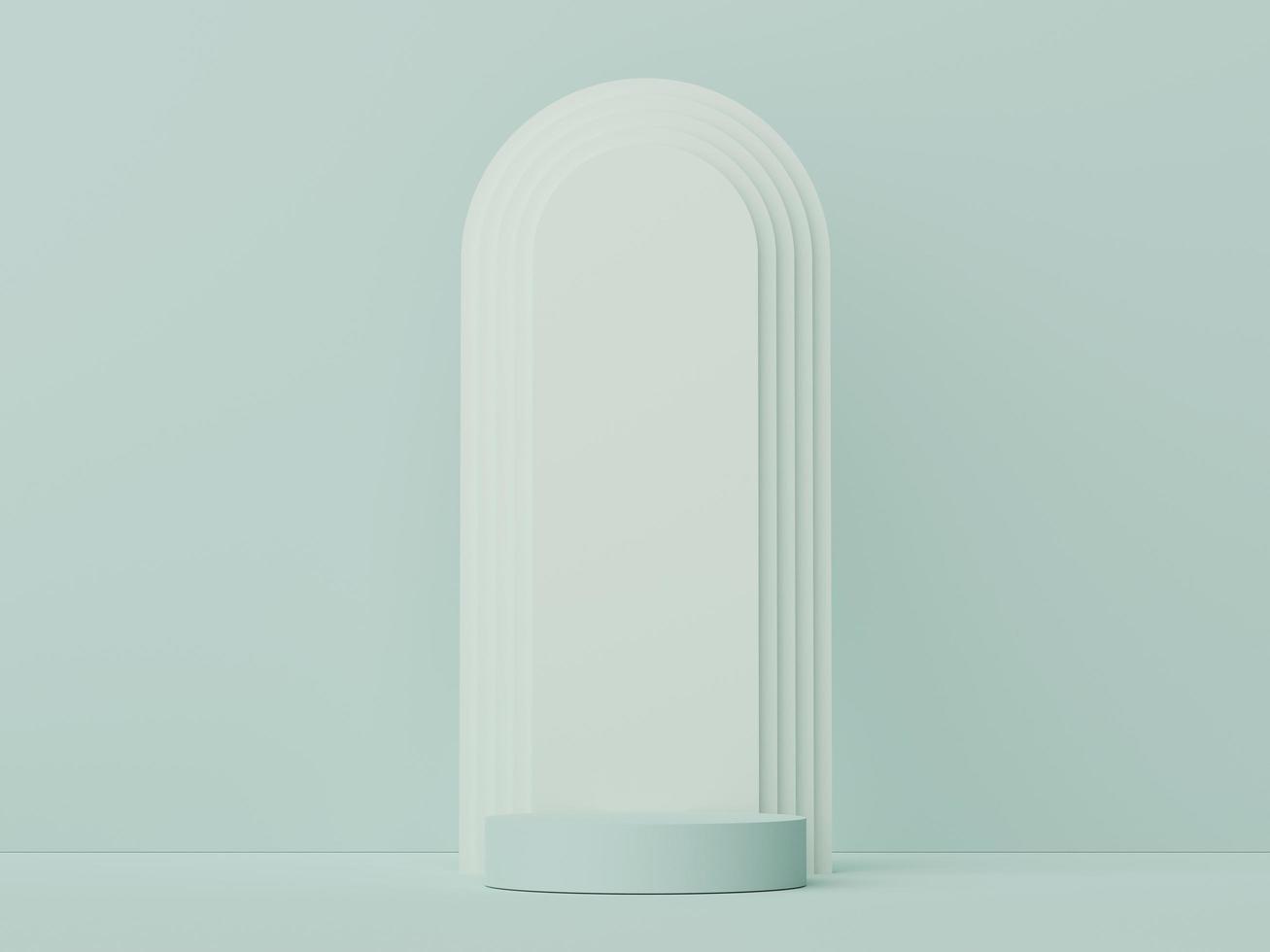 3d render of Abstract minimal display podium for showing products, cosmetic presentation and mock up. Showcase scene with pastel earth tone background. Illuminated simple geometric shapes. Free Photo