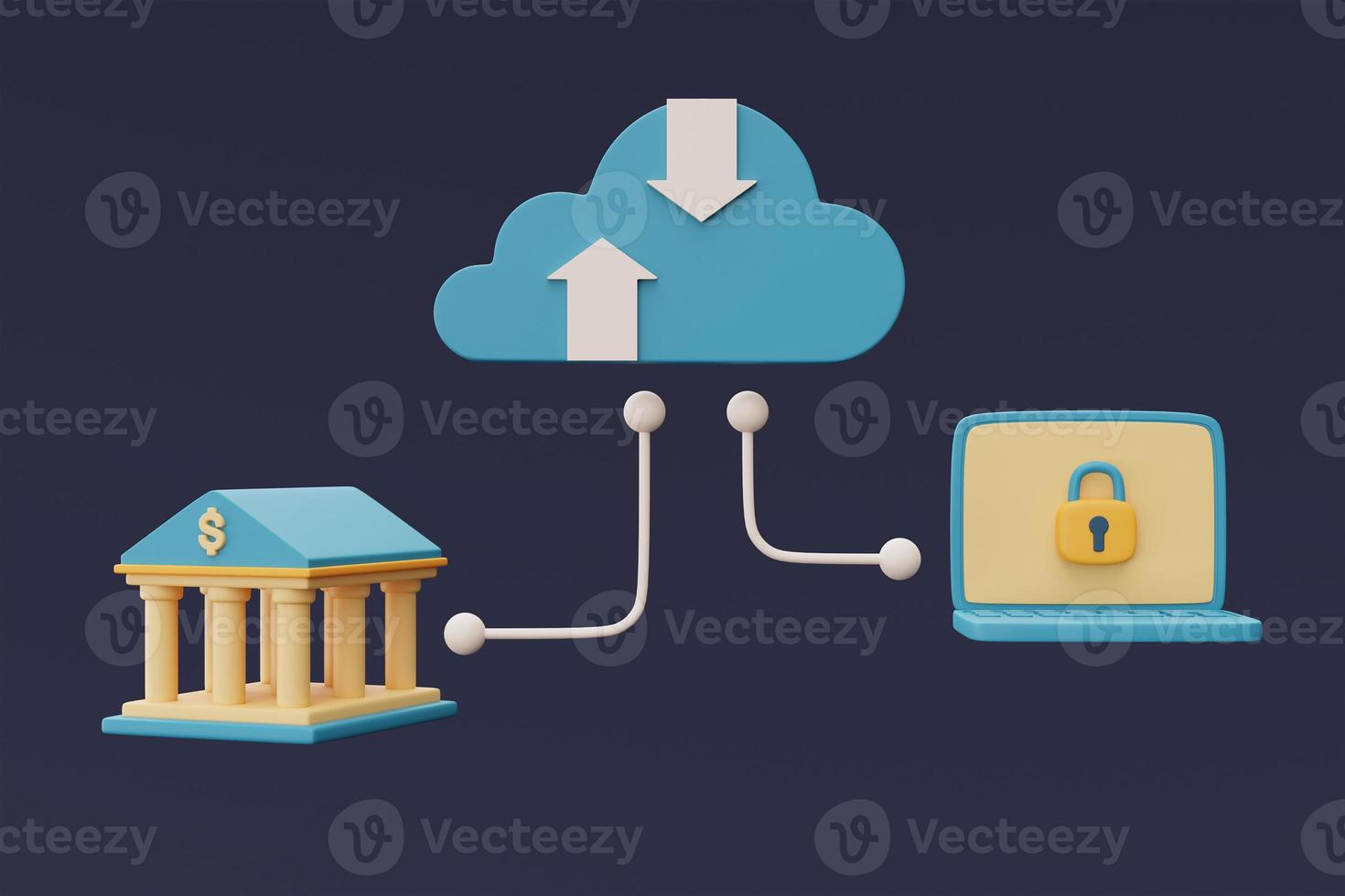 Cloud storage technology,Computer connects to online data storage and transfer information,database,security,minimal style.3d rendering. Pro Photo