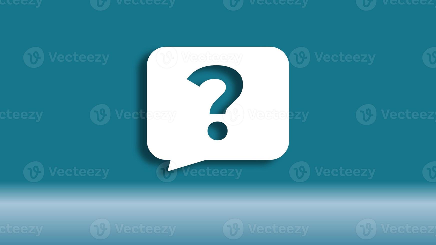Question Mark speech bubble isolated on blue gradient background. 3D Rendering Pro Photo