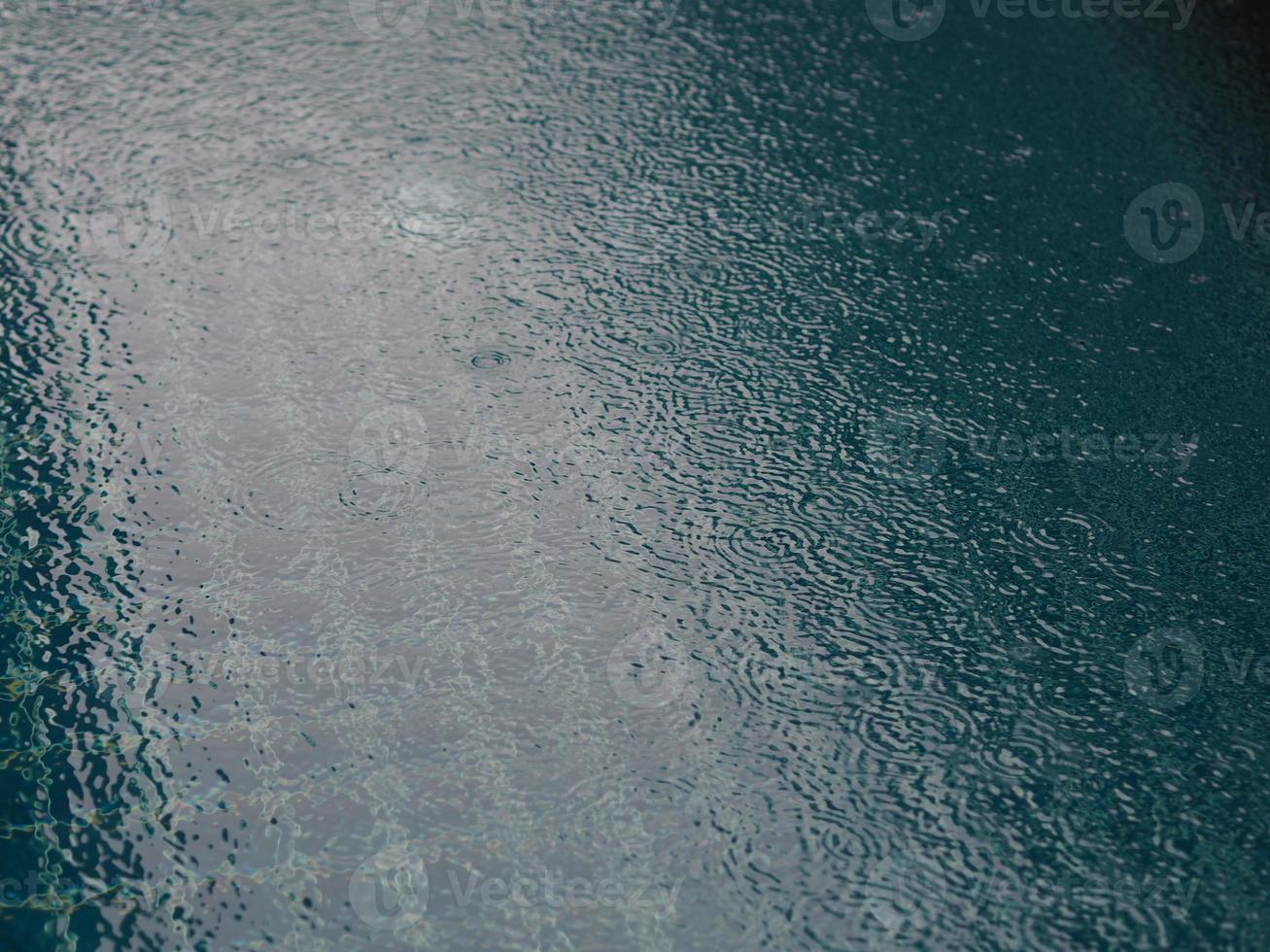 Rain drops falling blue water in pool background ripples on the surface texture, glittering bokeh abstract Pro Photo