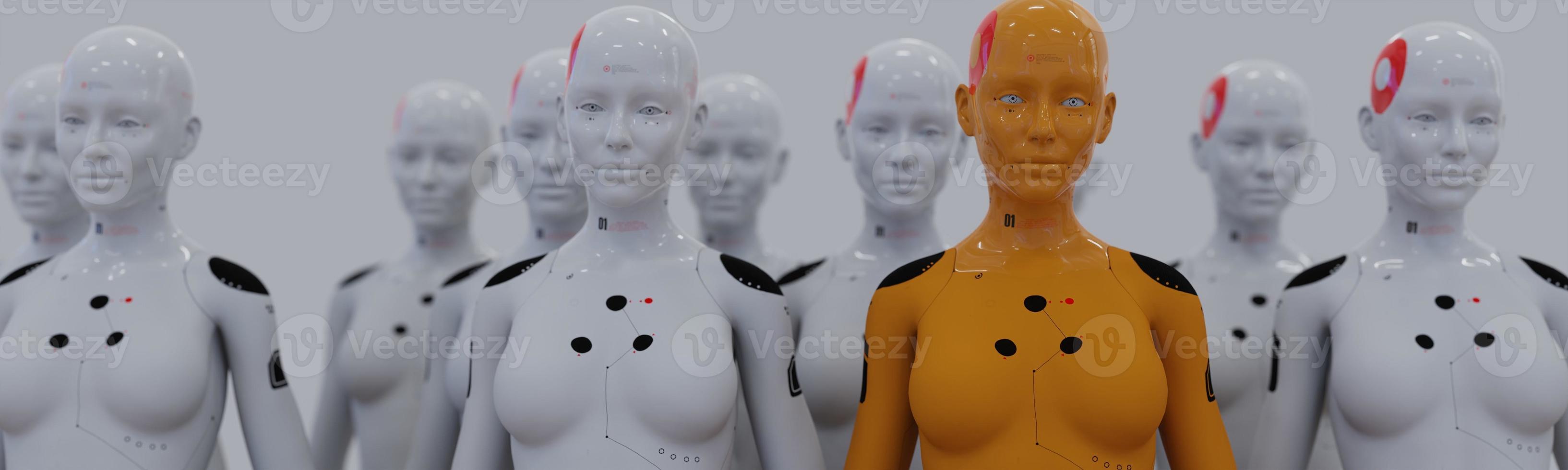a group of robots standing in rows one robot from all has a clear difference Pro Photo