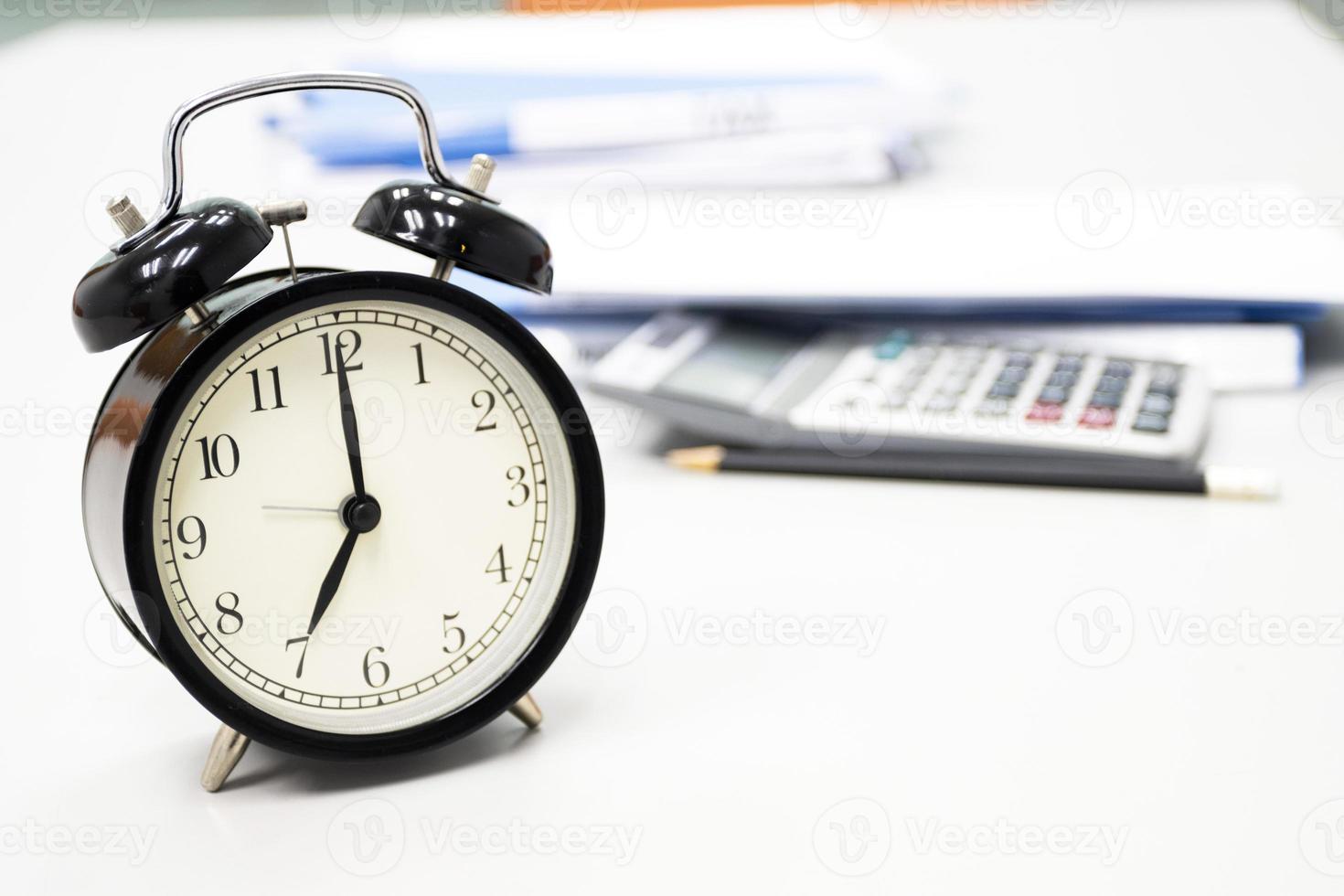 7 AM Clock on work desk in the office Time of businessman working concepts selective clock Pro Photo